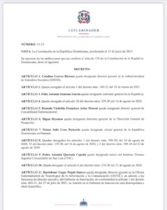 También, Abinader designó a Digna Reynoso en la Dirección de Pasaportes y a Néstor Julio Cruz Pichardo cónsul en Panamá.